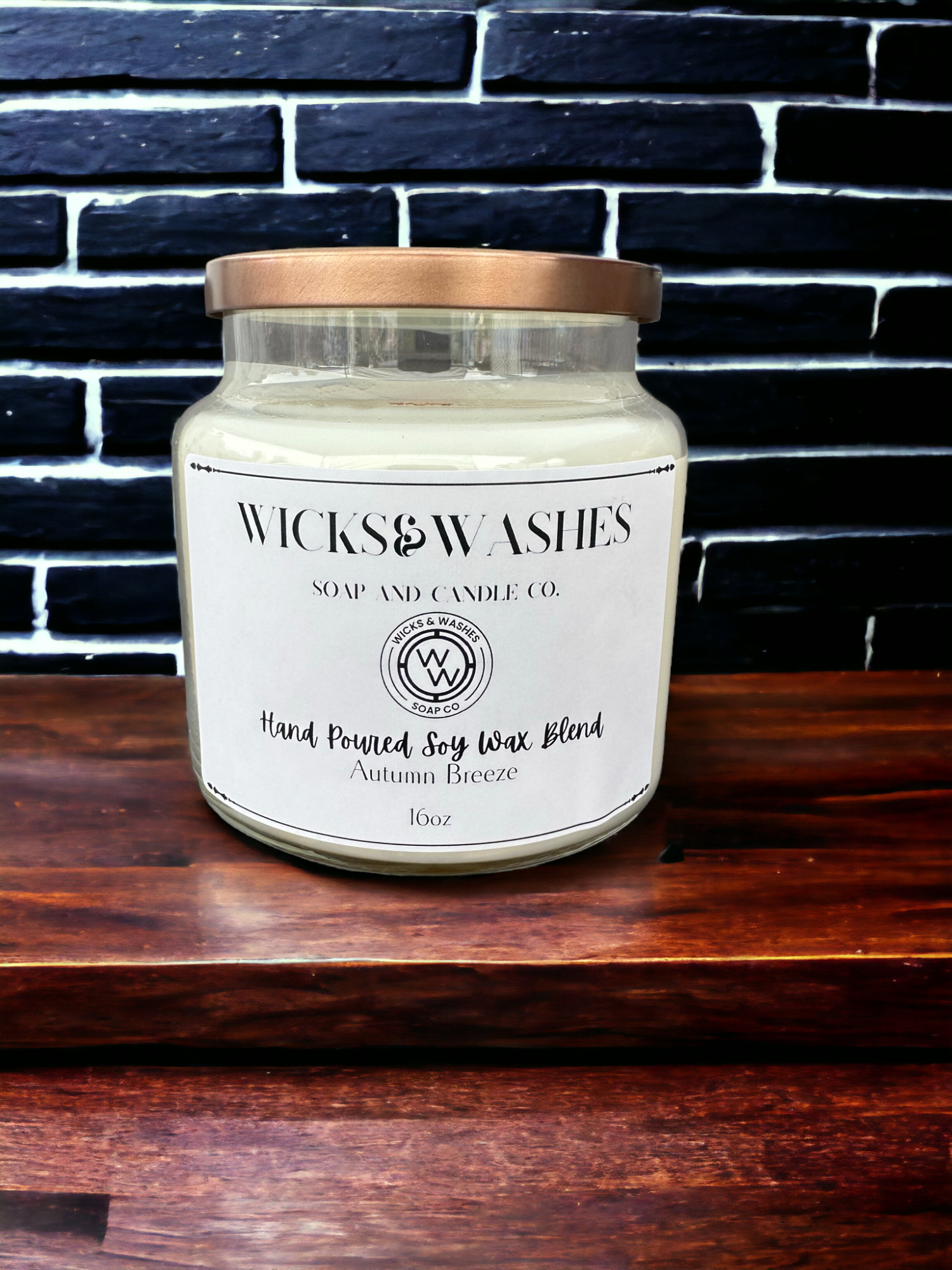 Our 16oz candles come with a wooden wick and clear apothecary jar